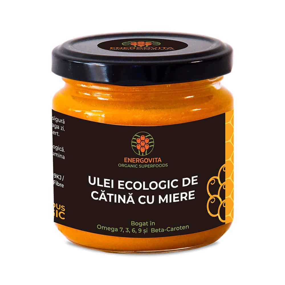 Uleiul de catina ecologica cu miere ENERGOVITA este un amestec excelent intre două super-alimente: cătina ecologica din cultura proprie și miere direct de la apicultori.